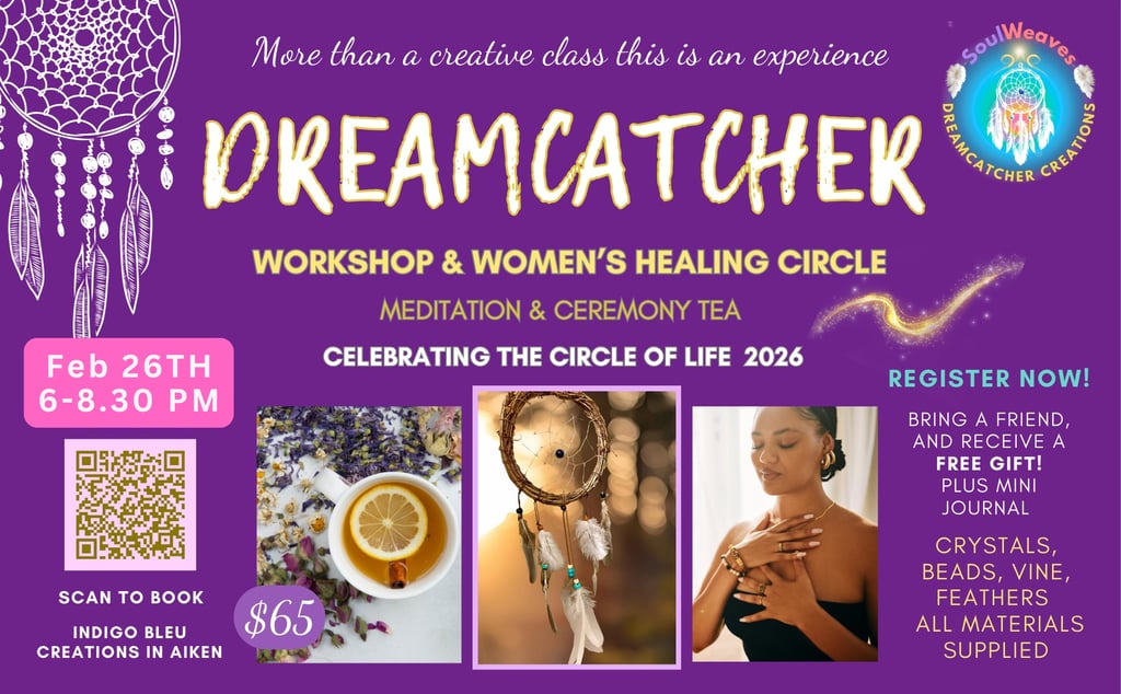 SoulWeaves Dreamcatcher Creations™ — an art and healing circle weaving dreams, intuition, and light into reflections of beauty, awareness, and inner courage.