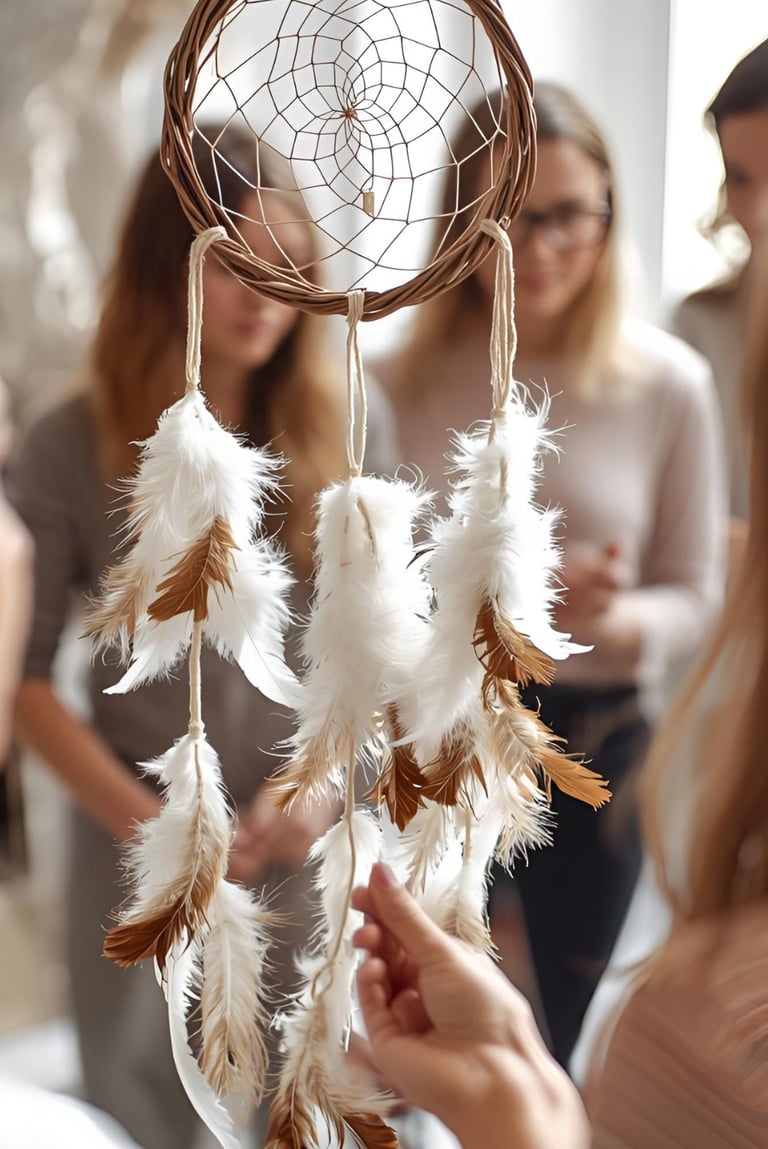 SoulWeaves™ Dreamcatcher Creations is a signature creative experience within Retreat of Dreams, inviting women to weave their own story, trust their inner rhythm, and embody self-compassion through presence, creativity, and reflection.